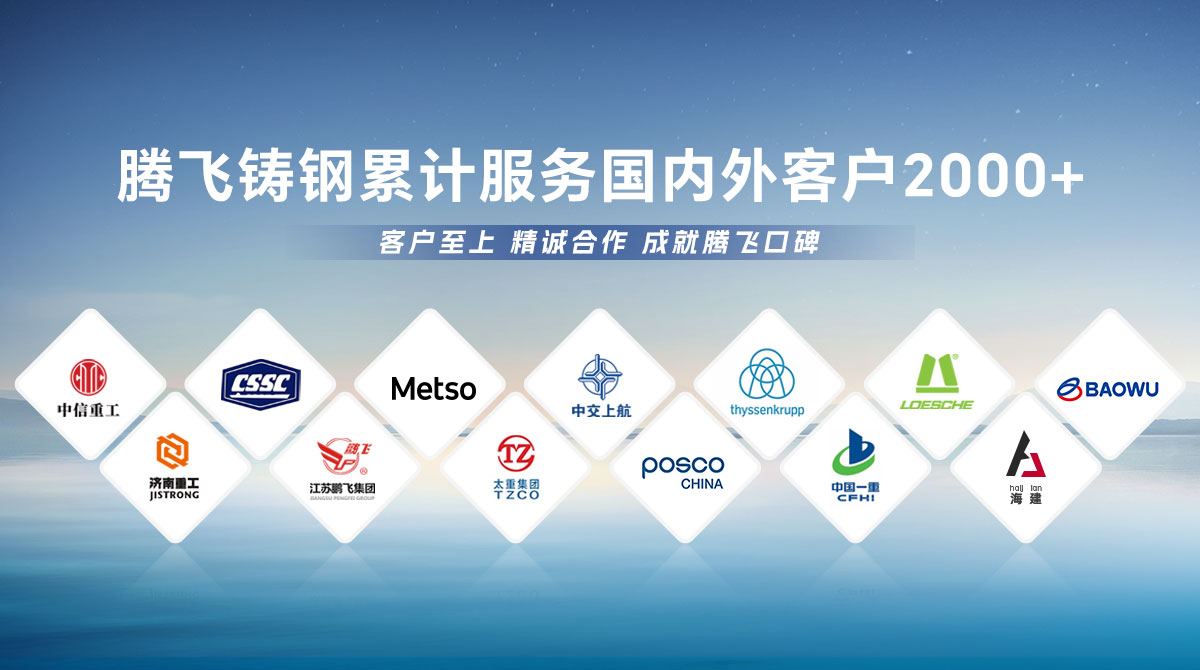 騰飛鑄鋼成立于2006年,位于全國鑄造基地河南省新鄉市,擁有員工300余人,是一家從事150噸以下碳鋼、低合金鋼、不銹鋼鑄鋼件研發、制造、服務為一體的國家高新技術企業?! 」就ㄟ^了ISO9001國際質量管理體系認證,擁有2項發明專 利,2項河南省科技成果、25項實用新型技術,通過了“環??冃гu級B級企業”驗收,先后榮獲“河南省鑄造行業綠色發展企業”、 “河南省科技型中小企業”、“河南省專精特新中小企業”等榮譽稱號。  公司擁有2臺25噸電爐,4臺大型天燃氣熱處理爐、10米回旋自動拋丸機一臺, φ8m數控立車、φ10m數控滾齒機等各類高精裝備100余臺套,年產能3萬余噸,能為客戶提供從產品設計、木模加工、大型鑄造、大型加工一站式服務,產品廣泛應用于建材、冶金、鍛壓、冶金、水工、路橋、化工等多個重型行業。  長期服務于中信重工、中船重工、美卓、上海中交、萊歇、寶武、濟南重工等全球知名企業,在行業內擁有較高的市場知名度和美譽度。